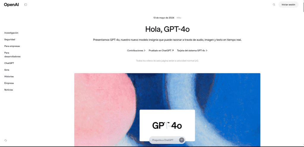 - Página oficial de anuncio de GPT-4o: https://openai.com/es-ES/index/hello-gpt-4o/