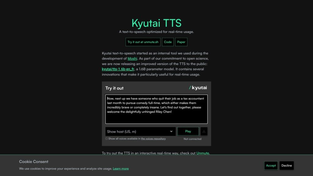 Además, Kyutai TTS ha sido desarrollado con una visión de compatibilidad universal, facilitando su implementación en una diversidad de plataformas y proyectos de inteligencia artificial. Esta flexibilidad se extiende a su integración en sistemas operativos variados, aplicaciones móviles, y plataformas web, haciendo de Kyutai TTS una herramienta altamente accesible para desarrolladores y creativos digitales.