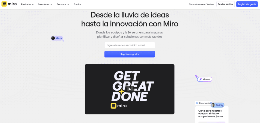 Además de las características mencionadas, Miro destaca por su integración fluida con otras plataformas y herramientas digitales, optimizando así el flujo de trabajo. Su enfoque en la inteligencia artificial permite automatizar tareas repetitivas y mejorar la organización visual, ventajas que pocas aplicaciones de colaboración digital ofrecen.