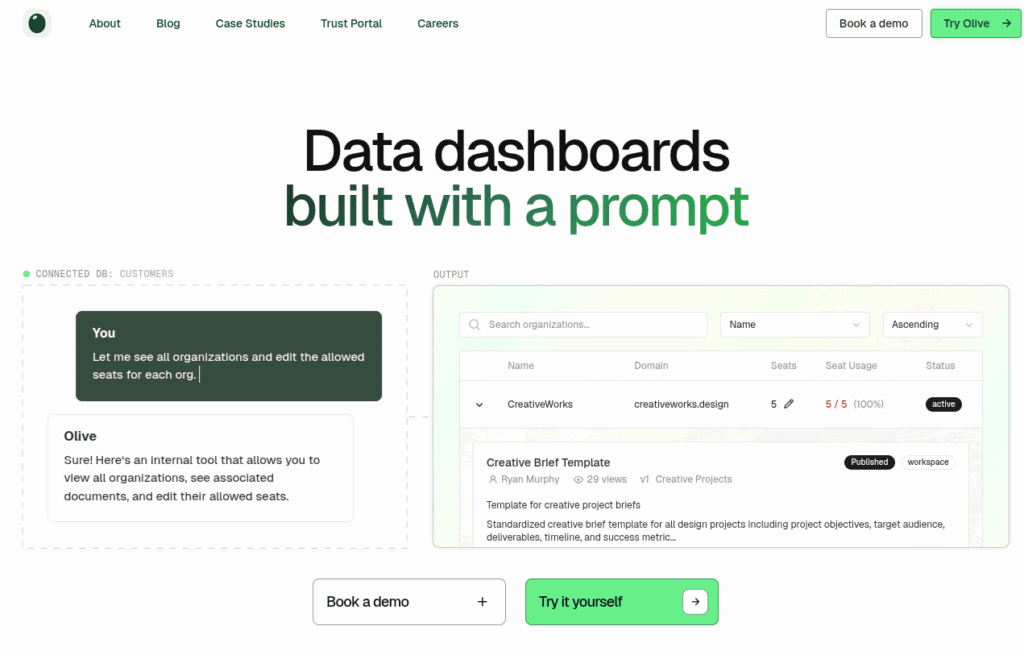 Además de su capacidad para interpretar y materializar prompts en interfaces administrativas, Olive se destaca por su adaptabilidad. Puede integrarse con diversas tecnologías, desde lenguajes de programación modernos hasta sistemas de gestión de bases de datos, lo que permite a los desarrolladores incorporar los paneles generados directamente en sus sistemas existentes con mínima fricción. Esta integración facilita la incorporación de funcionalidades complejas, como consultas a bases de datos y gestión de usuarios, sin requerir esfuerzos adicionales significativos.