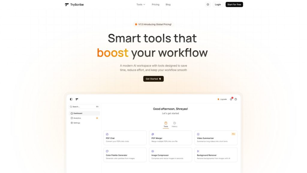 La optimización de flujos de trabajo se ha convertido en una prioridad para empresas y profesionales que buscan maximizar la eficiencia y productividad en sus actividades diarias. En este contexto, TryScribe se presenta como una plataforma de inteligencia artificial diseñada para potenciar estos procesos mediante herramientas avanzadas que facilitan la gestión, automatización y mejora continua. Esta solución no solo aborda la necesidad crítica de organizar y optimizar tareas repetitivas o complejas, sino que también integra capacidades de IA que permiten transformar la forma en que las organizaciones abordan sus operaciones.